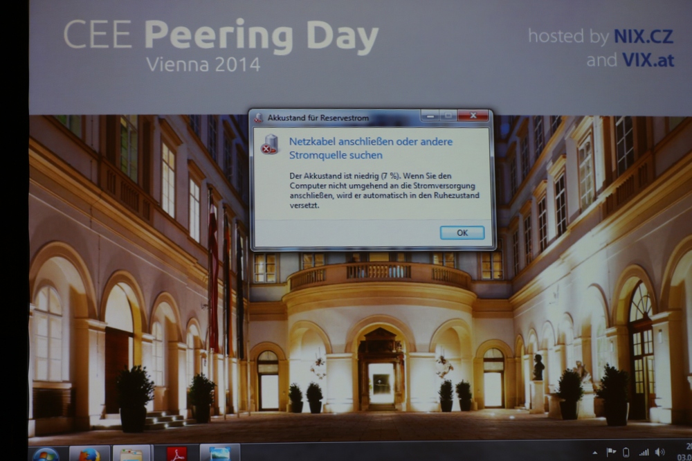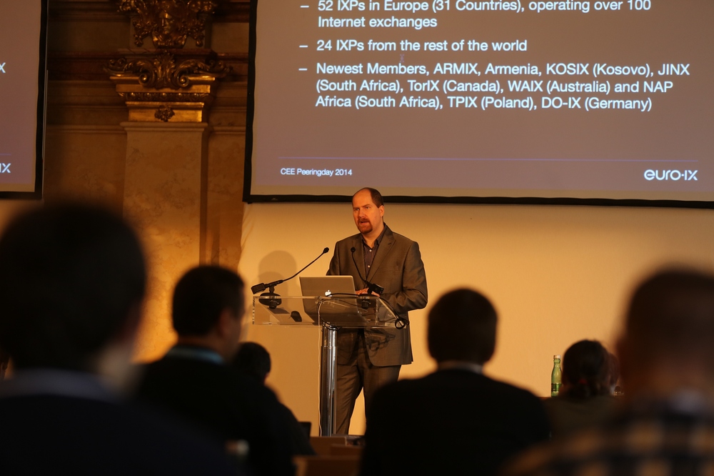 The CEE Peering Day Vienna 2014 conference was once again hosted by NIX.CZ and VIX.at. The conference was geared toward all network engineers, peering coordinators, Internet providers, cloud administrators, and data centre operators in Central and Eastern Europe. The programme included presentations by partners and sponsors of the conference, once again dedicating a sizeable space to social networks and peering.